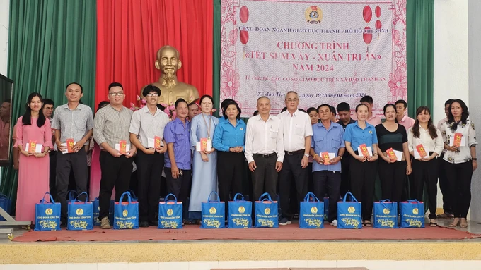 Sáng 19-1, tại Trường THCS-THPT Thạnh An (xã Thạnh An, huyện Cần Giờ), Công đoàn ngành giáo dục TP.HCM đã tổ chức chương trình “Tết sum vầy – Xuân tri ân” nhằm thăm hỏi, tặng quà tết cho 39 cán bộ, nhà giáo, người lao động đang công tác tại các trường học trên địa bàn xã đảo Thạnh An, huyện Cần Giờ.